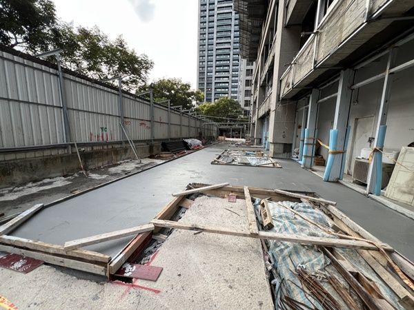 裝修工程及1F防水壓層作業中