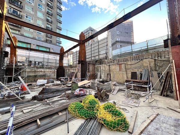 B1F柱牆模板組立作業中